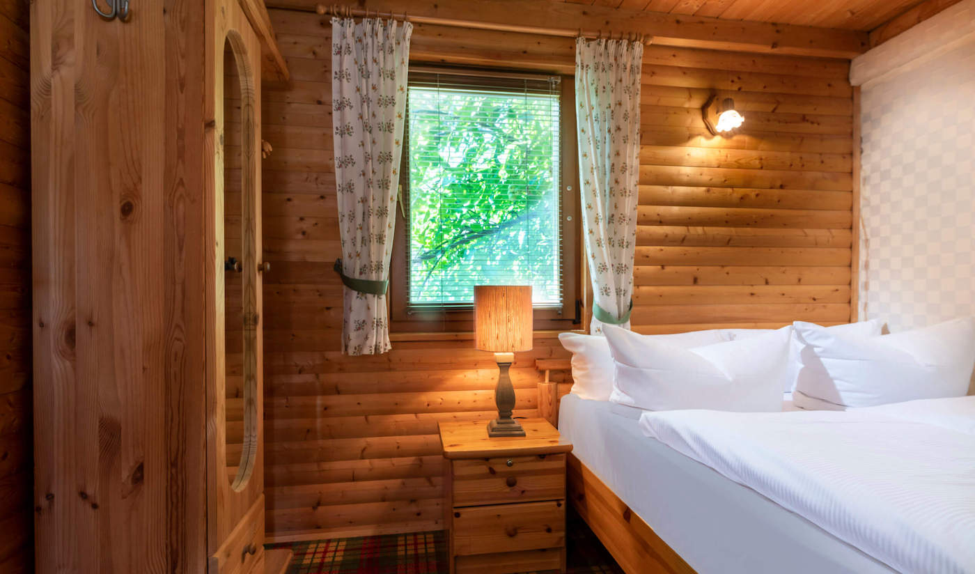 Unsere Chalets bieten Urlaub „in den eigenen 4 Wänden“. Perfekt für Paare, die die Zweisamkeit schätzen. Die Chalets verfügen über ein gemütliches Schlafzimmer im Dachbereich, das mit einem großzügigen 1,80 m breiten Doppelbett ausgestattet ist (über Raumspartreppe erreichbar), und bieten zudem Platz für ein weiteres Einzelbett im Erdgeschoss. Die hochwertigen Materialien der Einrichtung vermitteln sofort ein Gefühl von Heimat und Geborgenheit.